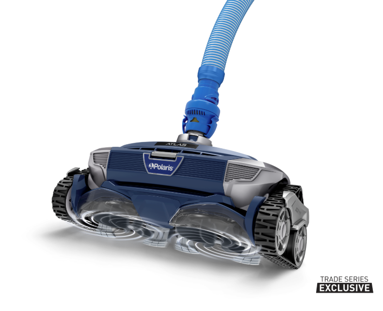 The Polaris ATLAS™ suction-side cleaner collects fine silt and long, larger debris with unobstructed performance. Engineered with HALO™ technology for advanced debris removal, the ATLAS cleaner was designed to provide clearance for larger leaves that get drawn directly into the filtration system while preventing impediments to allow for continuous, uninterrupted cleaning. The ATLAS cleaner also attacks stubborn, stuck-on debris with concentrated scrubbing action to leave your pool impeccably clean. Combined with multi-directional navigation for enhanced movement patterns and powerful turbines that generate unsurpassed climbing ability, the ATLAS cleaner covers your entire pool — regardless of the pool’s surface — from floor to waterline.